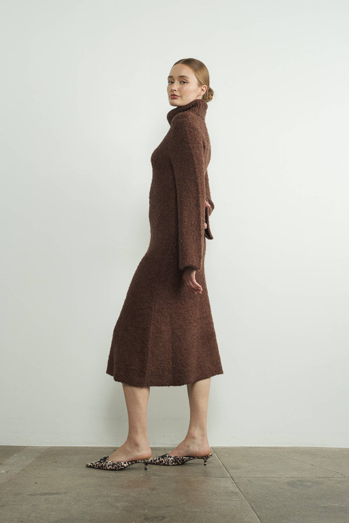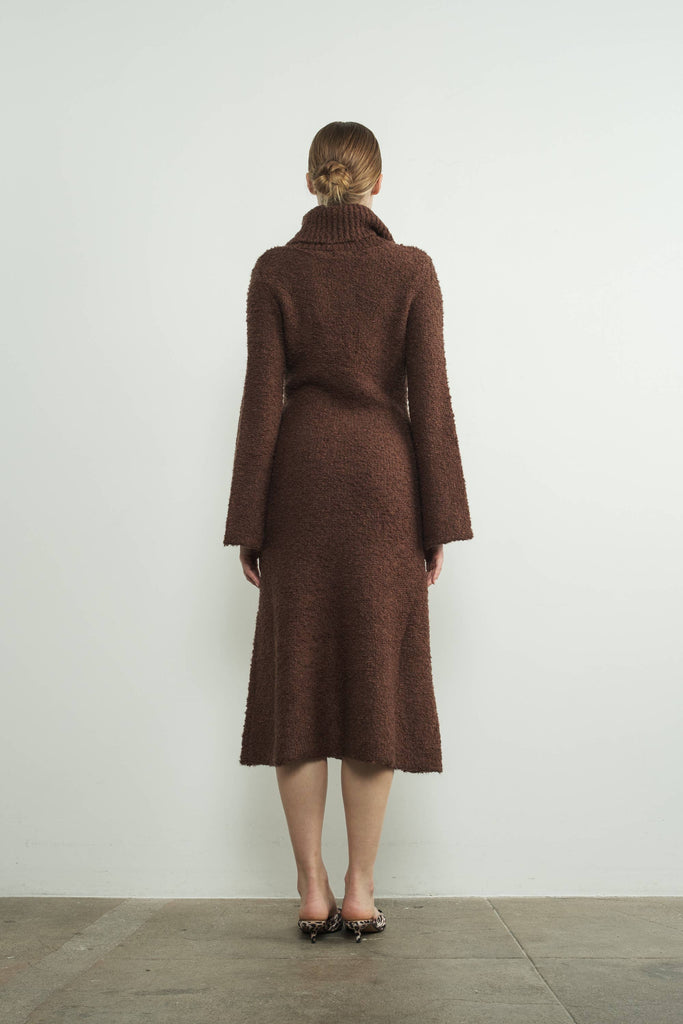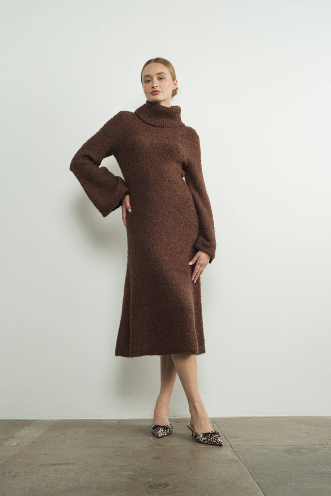 This romantic Dress features long bell sleeves, with elegance sillhouette. its a Pull-on turtleneck style. With its effortlessly chic silhouette and cozy yet stylish design, this sweater dress is a wardrobe essential for the modern romantic. Embrace the beauty of simplicity and let your style shine bright in this enchanting piece.